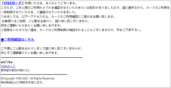 「【重要なお知らせ】VISAカード ご利用確認のお願い」